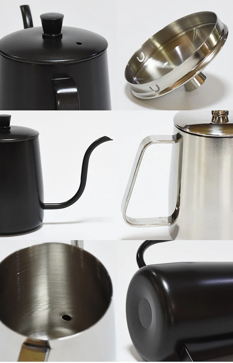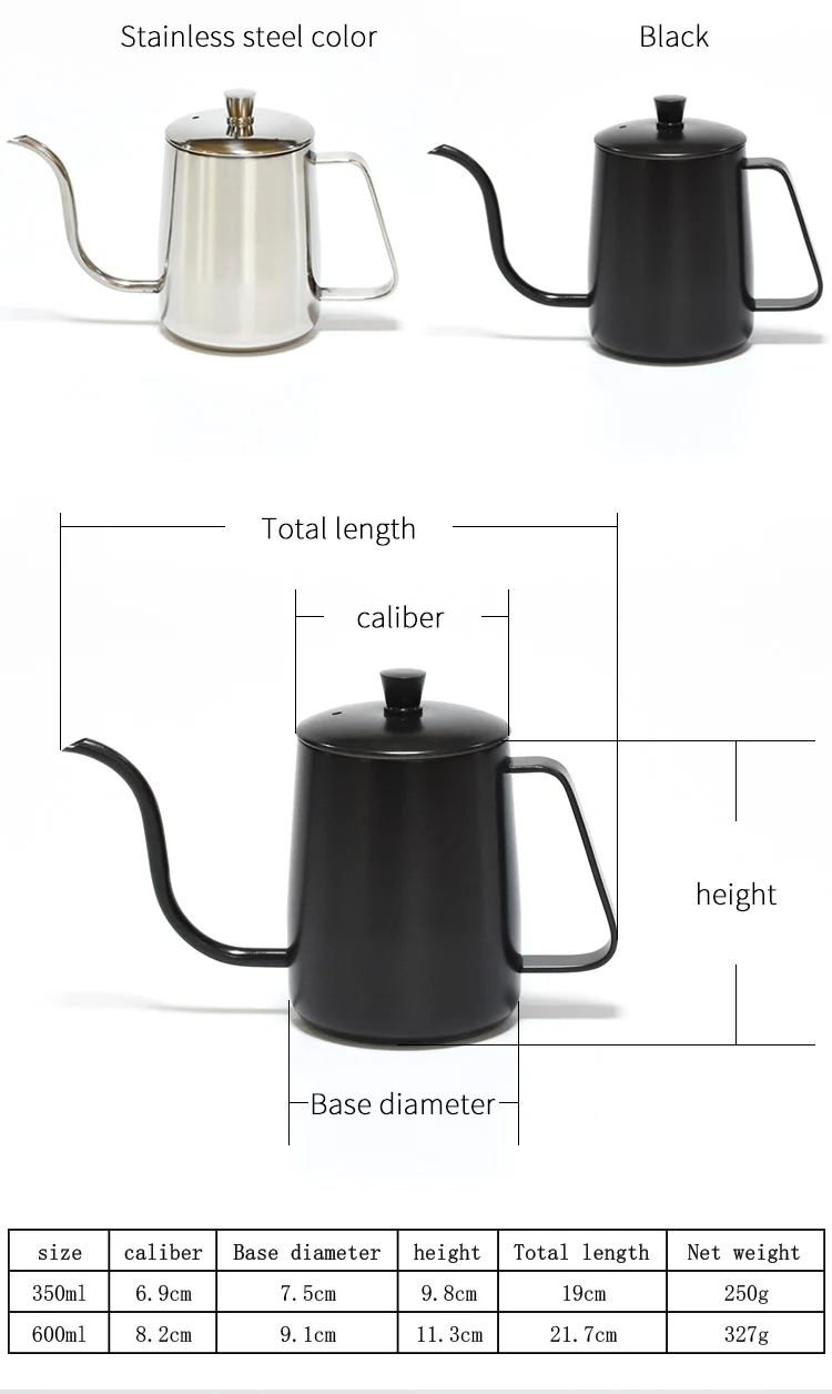 Hot sell 350/600ml hand drip coffee pouring kettle 304 stainless steel pour over gooseneck tea pot for kitchen hotel